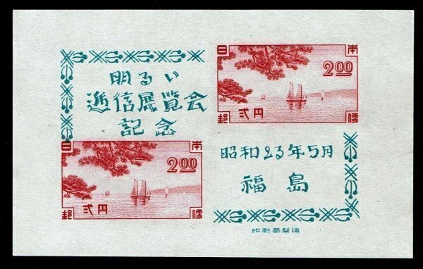 1948年 福島明るい逓信展記念 小型シート 未使用