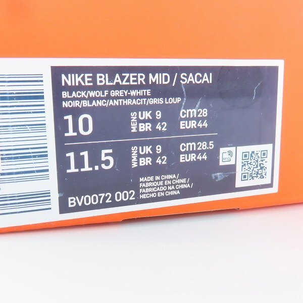 NIKE×SACAI/ナイキ×サカイ BLAZER MID/ブレザーミッド ブラック/ウルフグレー/ホワイト BV0072-002/28 /080 | |||||||||||||||||||||||||