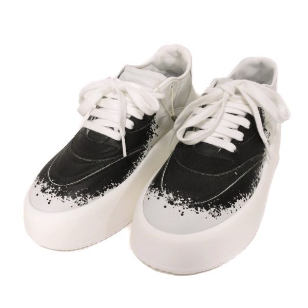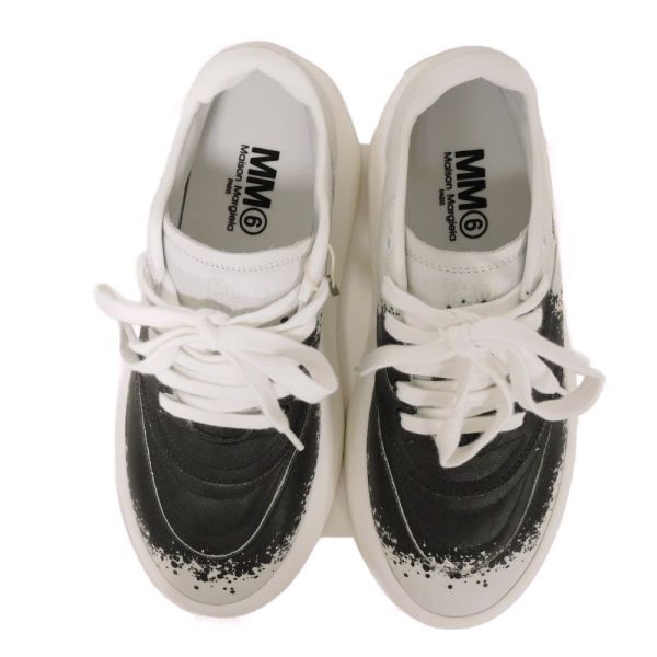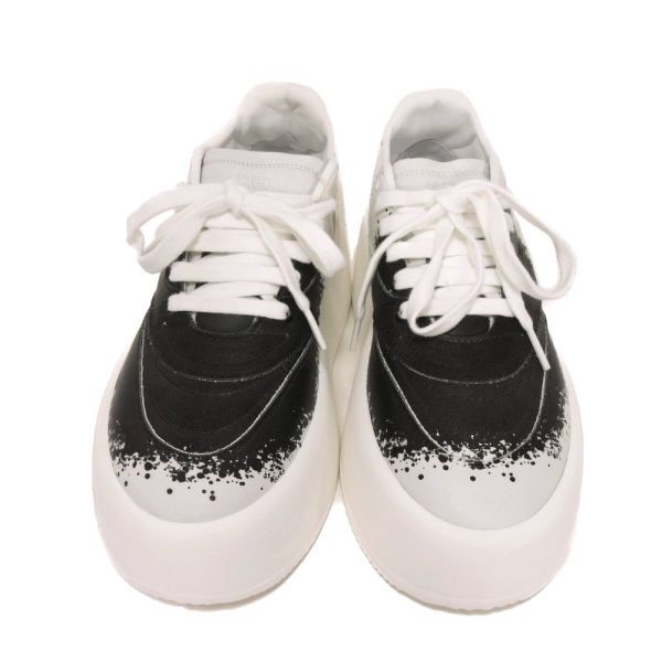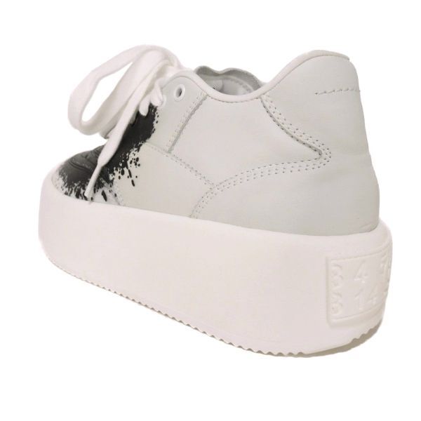 コメント | ペイントモチーフが施された、カーフレザーにメゾンマルジェラのMM6のシグネチャーロゴがエンボス加工された「ローカット ハーフペイント」プラットフォームスニーカーです。 |