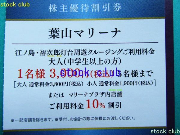 京浜急行電鉄主優待の株主優待券葉山マリーナ割引券1枚です。