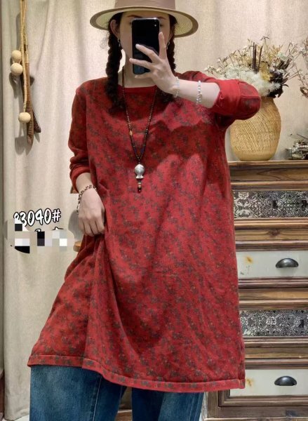 mn 2510 ニット セーター チュニック トップス ゆったり 綿100% ナチュラル 花柄12