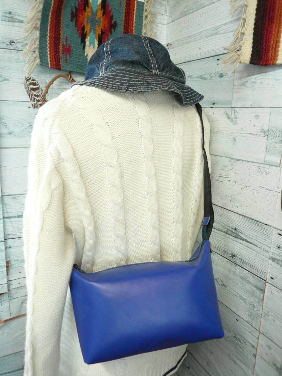 【コバルトブルー牛革!ショルダーバッグ爽やか】ハンドメイドバッグ 作家手作り日本製バッグ made in Japan 458