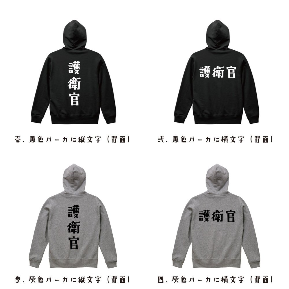 護衛官 オリジナル パーカ デザイナーが書く プリント フルジップ パーカー S M L XL XXL 110 130 150 【 職業 】