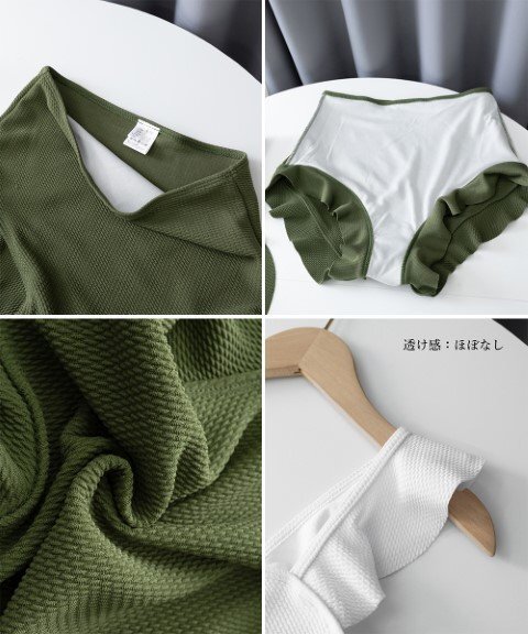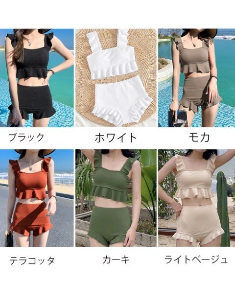 程良いフリルがデザインされていてガーリー感もプラス!夏らしいリップル風の立体感ある生地は周りと差がつく、凹凸感がこなれ感をプラス。