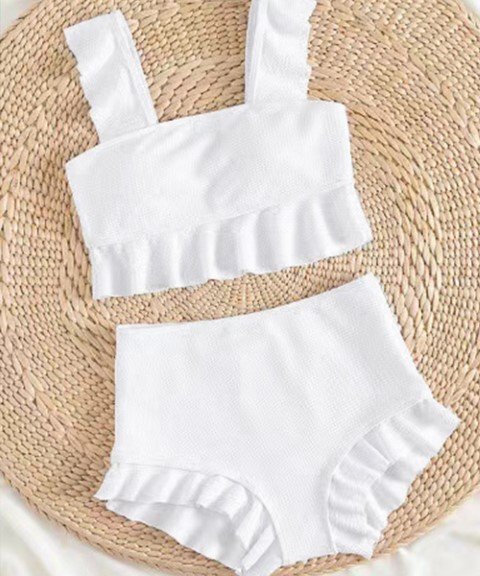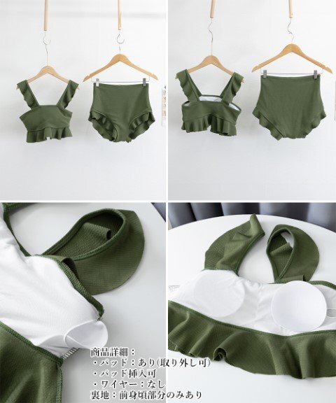 ビスチェ風ビキニ×ハイウエストショーツを組み合わせたフェミニンな雰囲気の水着セットです。