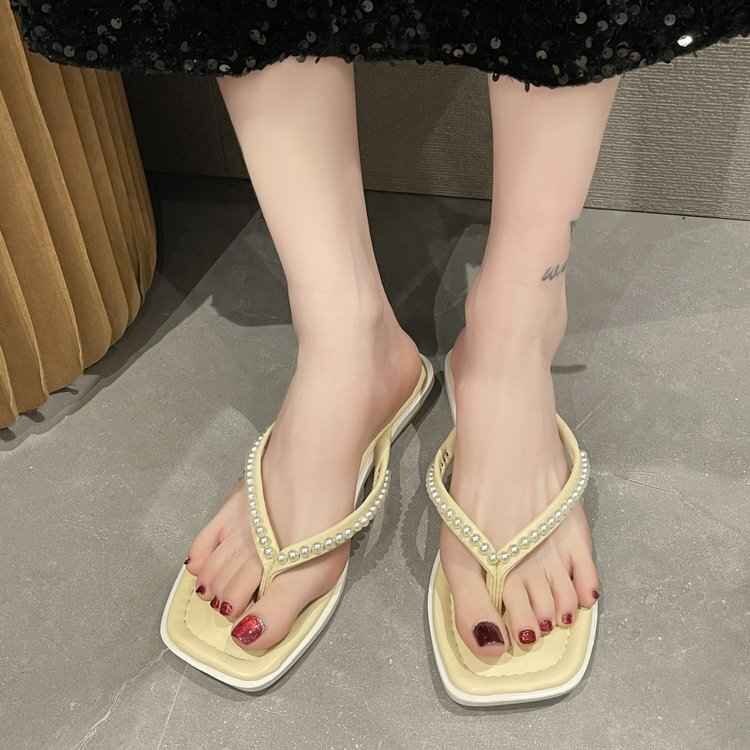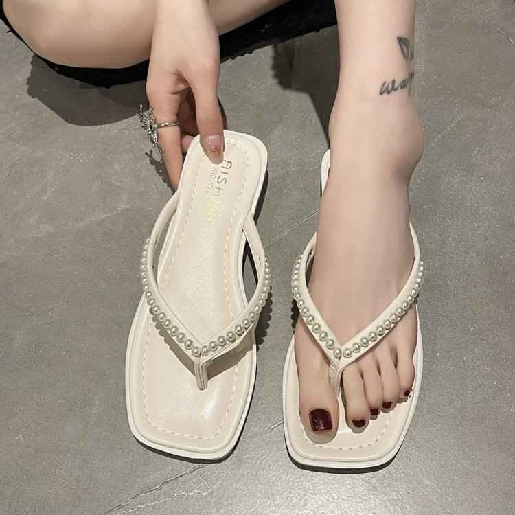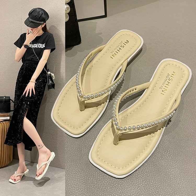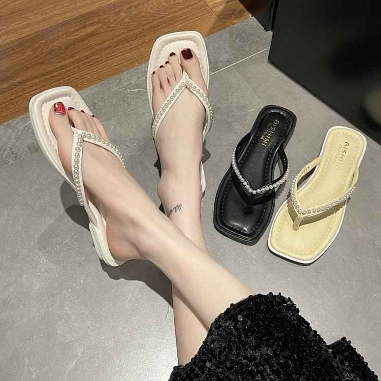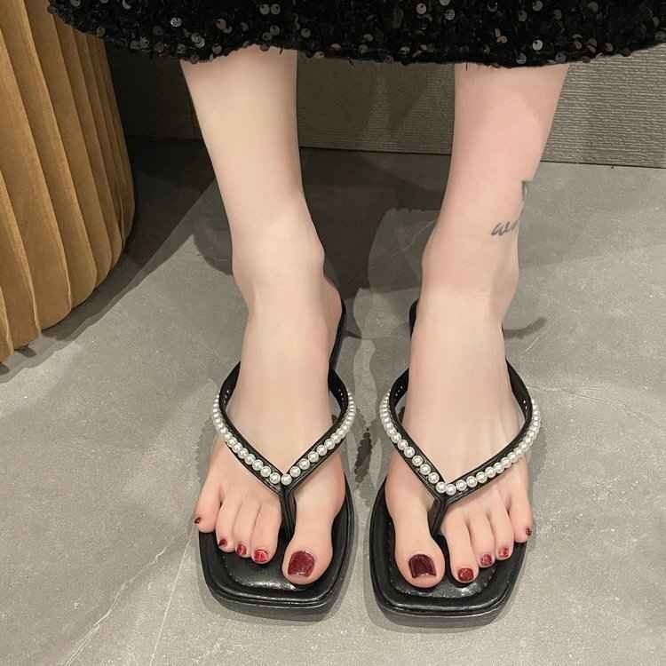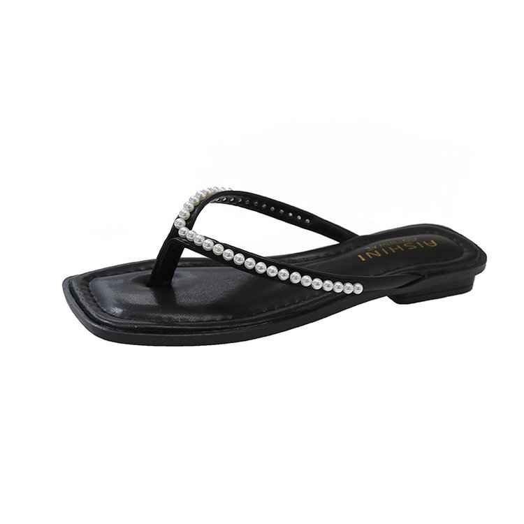 ビーチサンダル スリッパ 春夏 レディースファッション オシャレ INS パール 22.5cm ブラック
