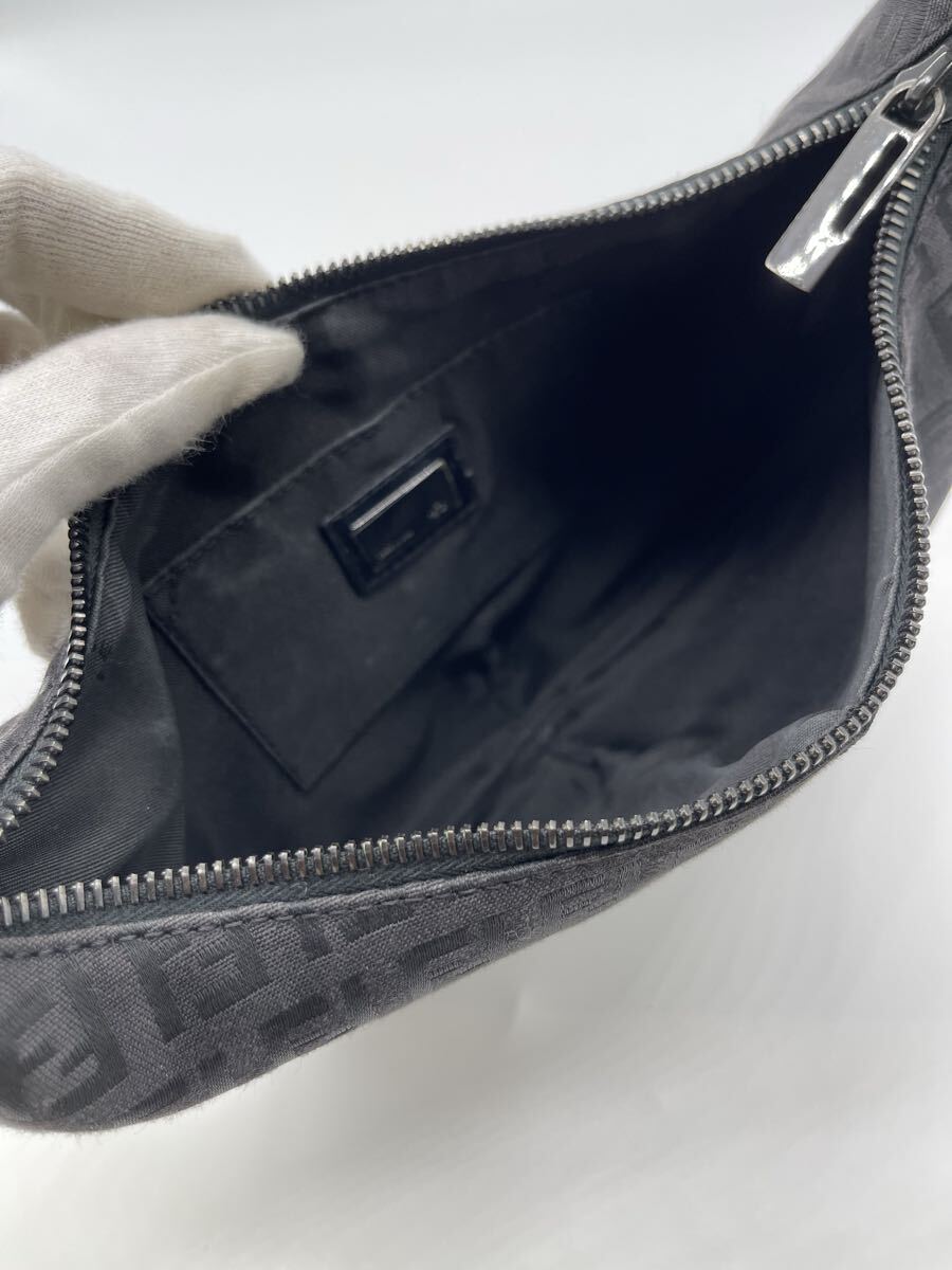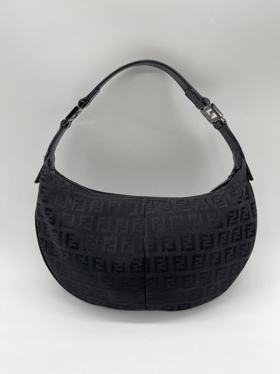 FENDI Zucca Pattern Hobo Bag Black Unisex Made in Italy