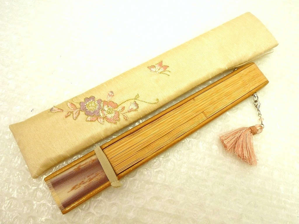 ●扇子袋には素敵な野ばらと蝶の刺繍入り