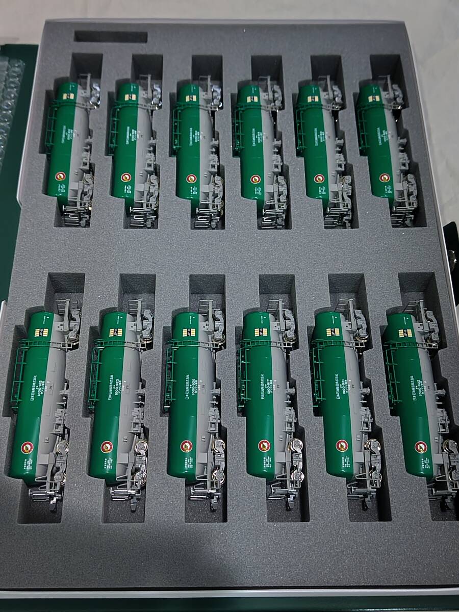カトー 10-1589 タキ1000 日本石油輸送(米軍燃料輸送列車) 12両セット カプラーを交換した以降、未走行の物。 出品の撮影のみで試走等の点検は行っておりません。 全車、カトーカプラーに交換しています。 元のカプラー、スプリングは有りません。 後部反射板の部品は未使用です。 箱には保管時に付いた汚れ変色傷み等が有ります。 それ以外の不具合は見あたりませんでしたが、見逃しがあるかもしれません。 一度、人の手に渡った品と言う事をご理解の上、ご入札下さい。 完全な商品をご希望でしたら、小売店の店頭や通信販売等で新品を購入されることをお勧めします。 | ||