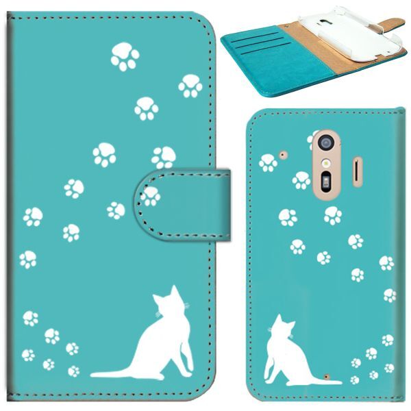 docomo らくらくスマートフォン F-01L/F-42A ケース 手帳型 (ねこの足跡いくつ?/ホワイト) FUJITSU F-01L-PD-BLR-YSZ-0141