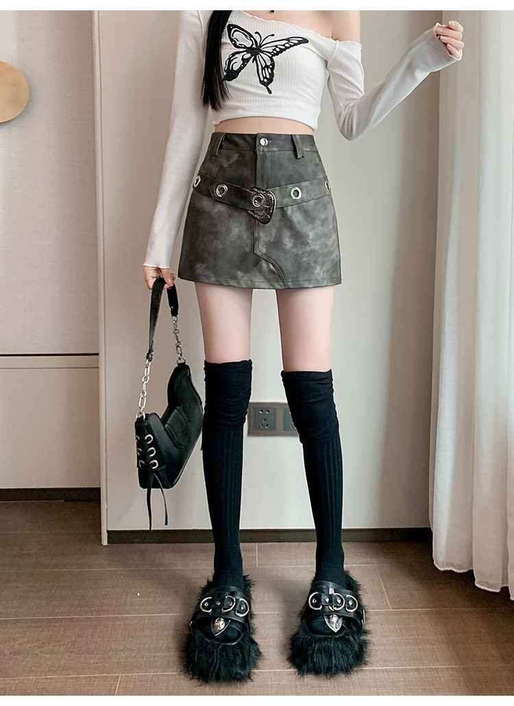 PUレザースカート ミニスカート Aライン ス力ート ミニ ハーフスカート 秋冬 L ブラック