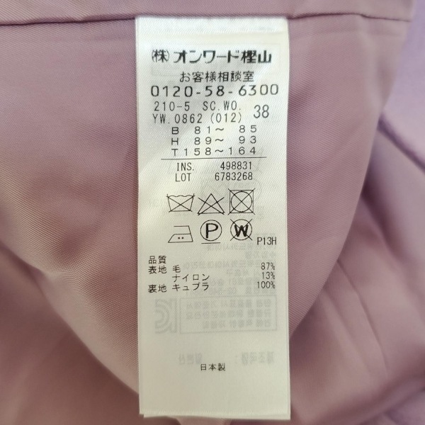 ニジュウサンク 23区 サイズ38 M - ライトパープル レディース 長袖/秋/冬 美品 コート