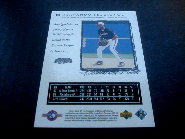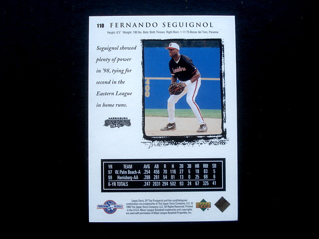 来日外国人選手 フェルナンド・セギノール オリックス.日本ハム.東北楽天在籍 AAハリスバーグ・セネターズ マイナーリーグカード1999年