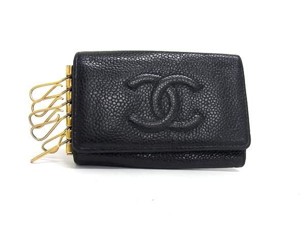 1円 CHANEL シャネル ココマーク キャビアスキン 6連 キーケース 鍵入れ レディース ブラック系 FV2623