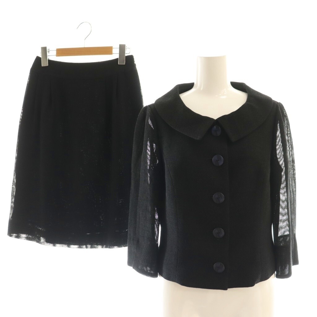 エムズグレイシー M'S GRACY サマーメッシュ ジャケット スカート セットアップ 上下 七分袖 膝丈 38 黒 ブラック /AT ■OS レディース