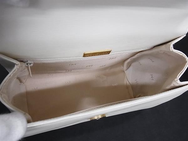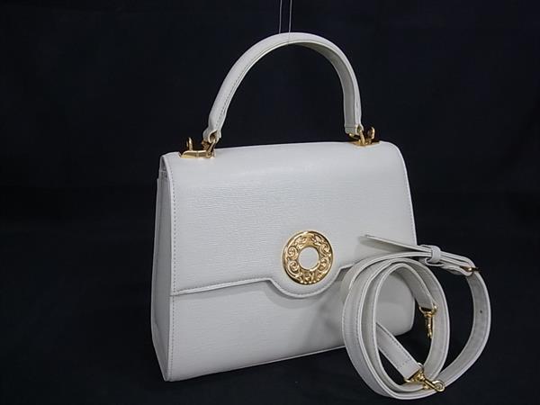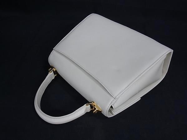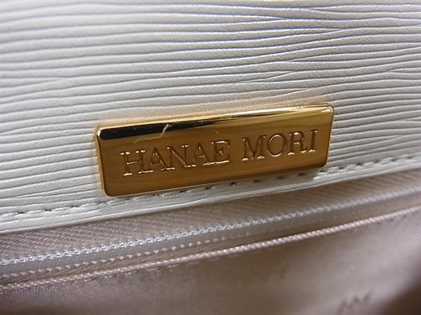 1円 ■極美品■ HANAE MORI ハナエモリ レザー 2WAY ワンハンドル ハンドバッグ ショルダー 斜め掛け レディース アイボリー系 BN5537