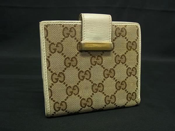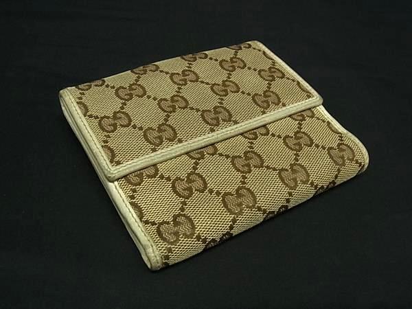 1円 GUCCI グッチ 212090 0959 GGキャンバス 三つ折り 財布 ウォレット レディース ベージュ系 FV2626