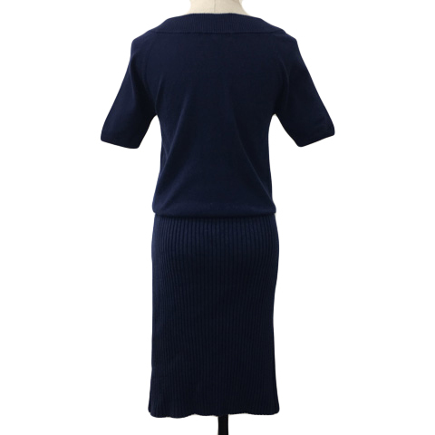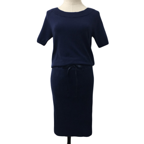 アプワイザーリッシェ Apuweiser-riche ワンピース Iライン ニット ロング 無地 ウエストゴム 半袖 2 紺 ネイビー レディース
