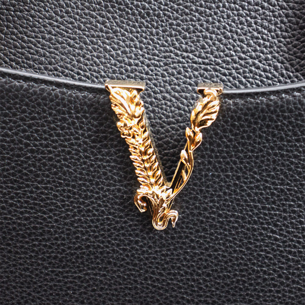 | バロッコ レターVモチーフを装飾としてあしらった金具が印象的なヴェルサーチのバッグです。 取り外し可能なショルダーストラップとトップハンドル付きで、コーディネートに合わせたスタイリングをお楽しみいただけるアイテムです。 | |