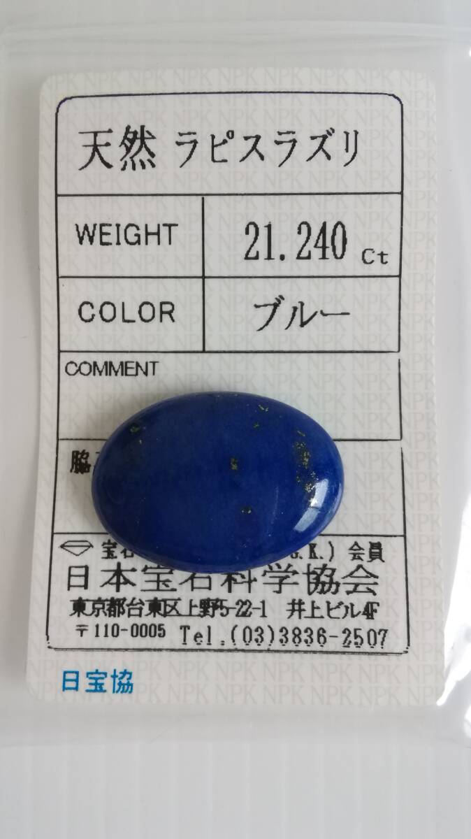 天然 ラピスラズリ ルース 25x18x5.5mm、21.240ct ソーティング付き