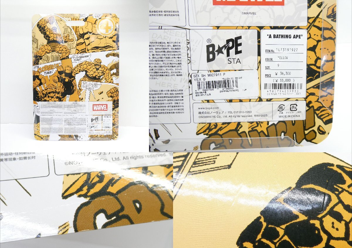 アベイシングエイプ A BATHING APE × MARVEL / BAPE × F4 BAPE STA THE THING Yellow size:27.0cm 靴 | |||||||