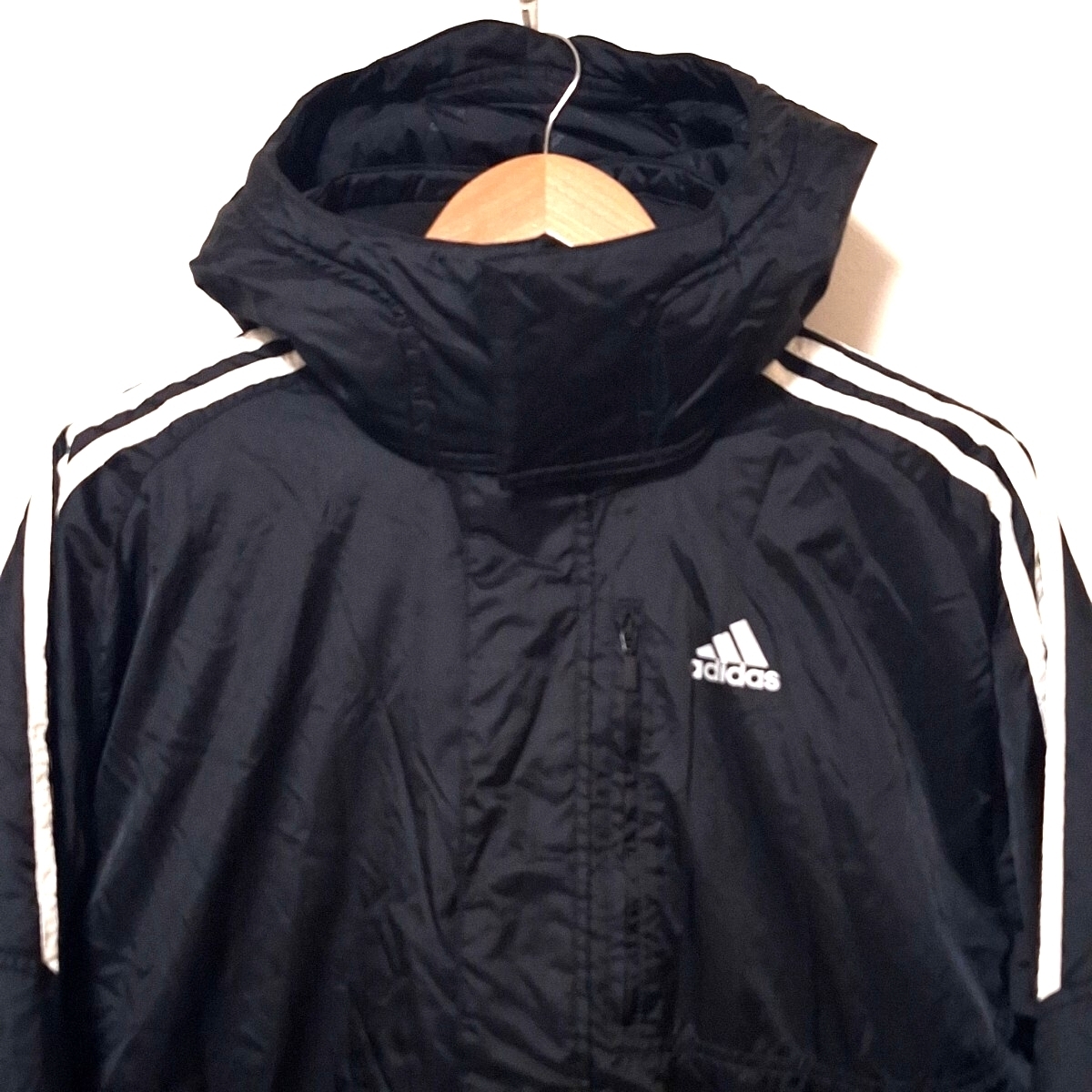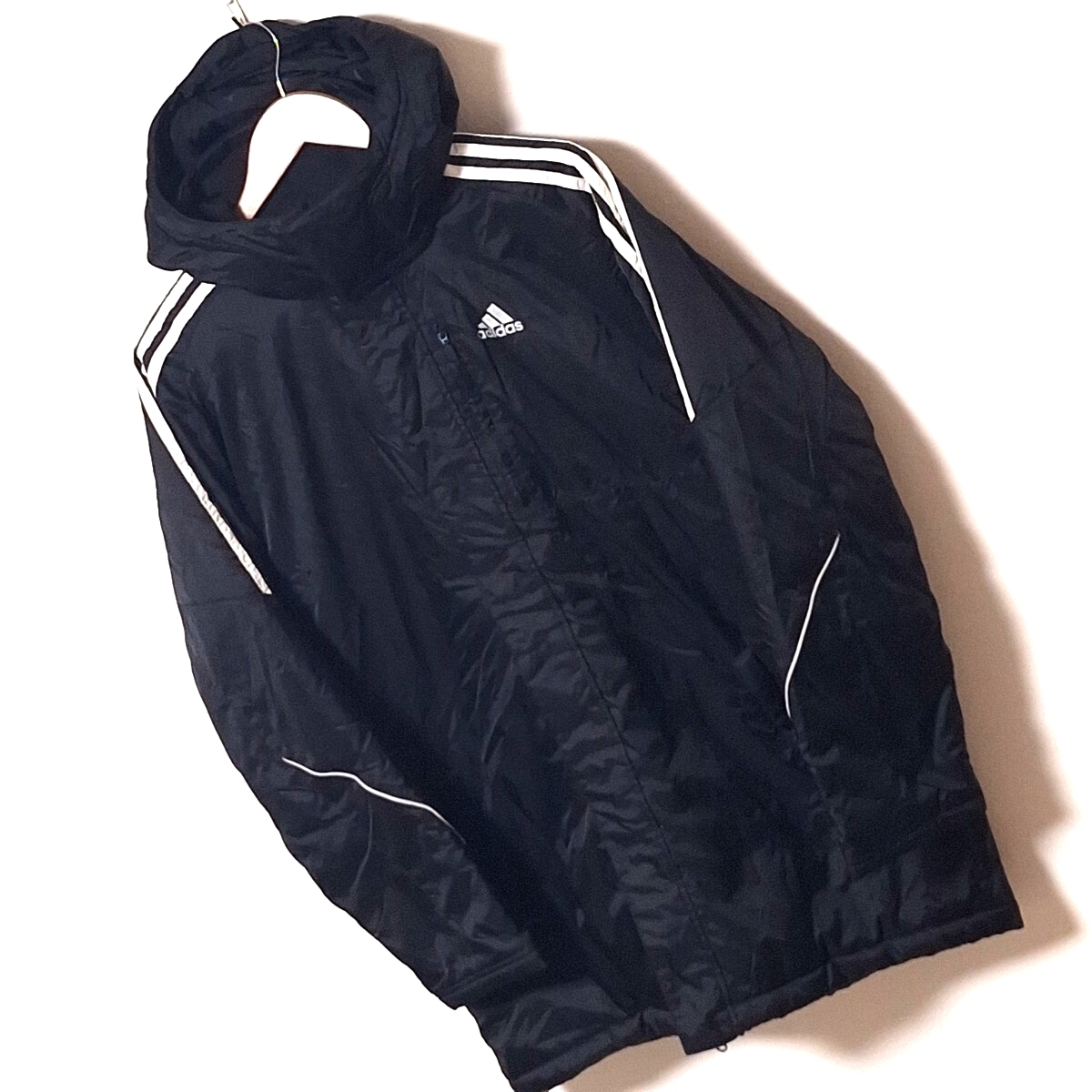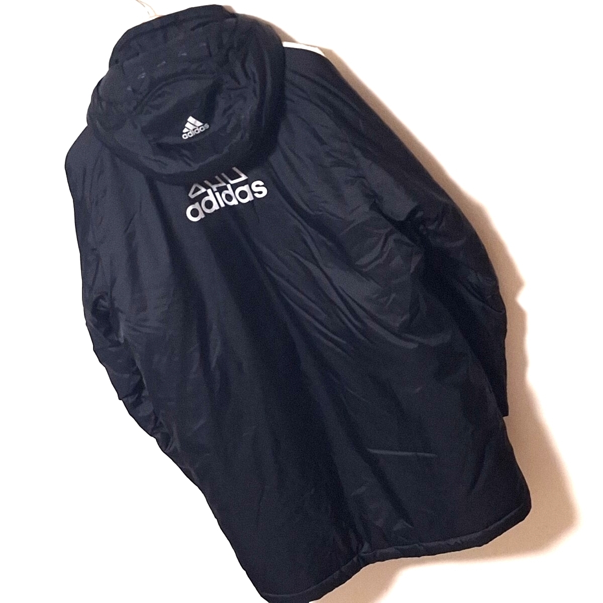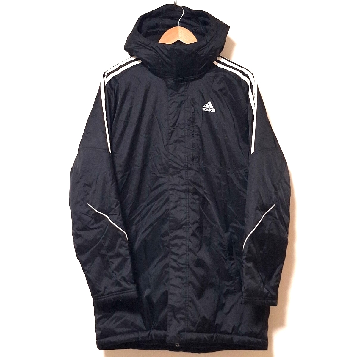 W90【adidas】アディダス ベンチコート スポーツ サッカー 観戦 応援 防寒 ウエア アウター ロング丈 メンズ ブラック サイズL /QQ