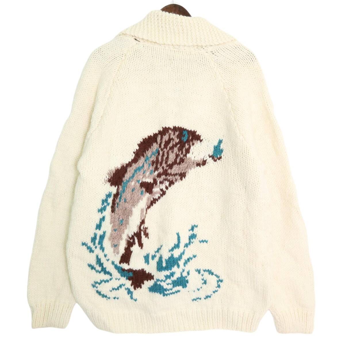 | 【商品管理番号】 A2268 【サイズ】 L相当 【実寸サイズ】 着丈:約75.5cm 身幅:約60cm 裄丈:約98cm 【主な素材】 表地 : ウール 【色】 アイボリー 【仕様】 80年代 フィッシング柄 カウチンニットセーター 【状態】 特記事項: 全体的に使用感がございます。着用に問題はございません。 | |||