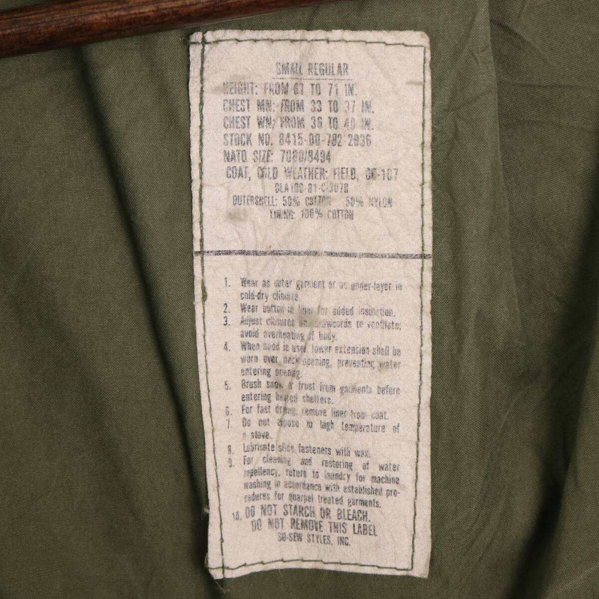 | 【商品管理番号】 A2849 【ブランド】 /米軍実物 U.S.ARMY 【サイズ】 SMALL REGULAR 【実寸サイズ】 肩幅:約49.5cm 着丈:約74cm 身幅:約56.5cm 袖丈:約61cm 【主な素材】 表地 : コットン 【色】 オリーブ 【仕様】 80年代 1981年 フード収納可能、ウエストドローコード、ライナー接続可能 ミリタリー M-65 フィールドジャケット 3rd 【状態】 特記事項: 所々に薄い汚れと擦れがございます。着用に問題はございません。 | |||