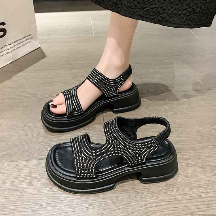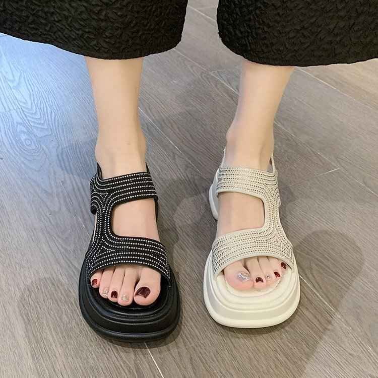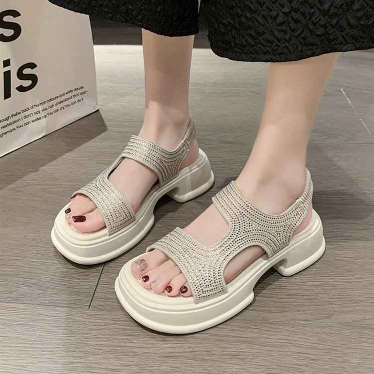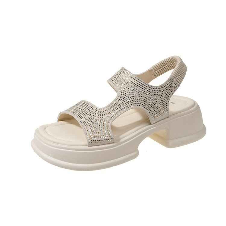 厚底サンダル 春夏 レディースファッション オシャレ ins デザイン ストーン 25.0cm ホワイト