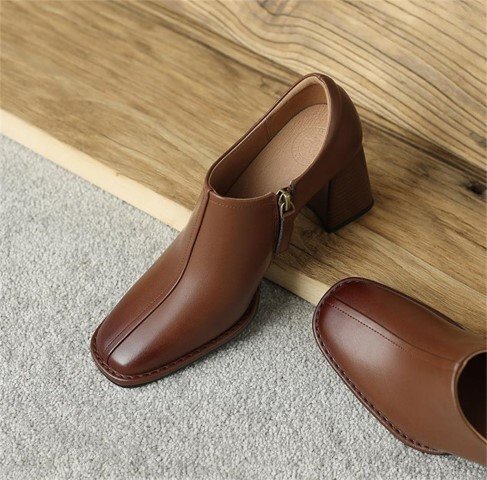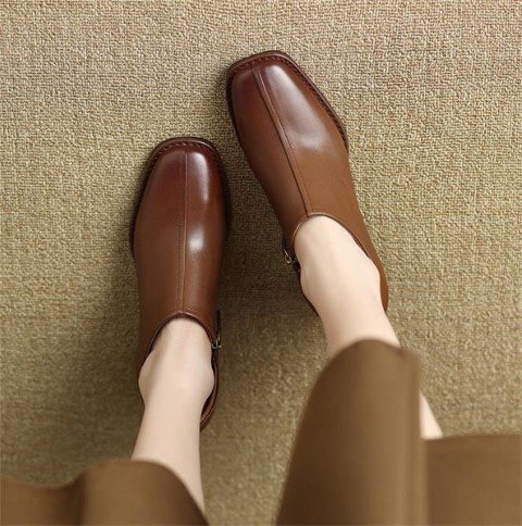 ショートブーツ スクエアトゥ 【38】24cm ブラウン
