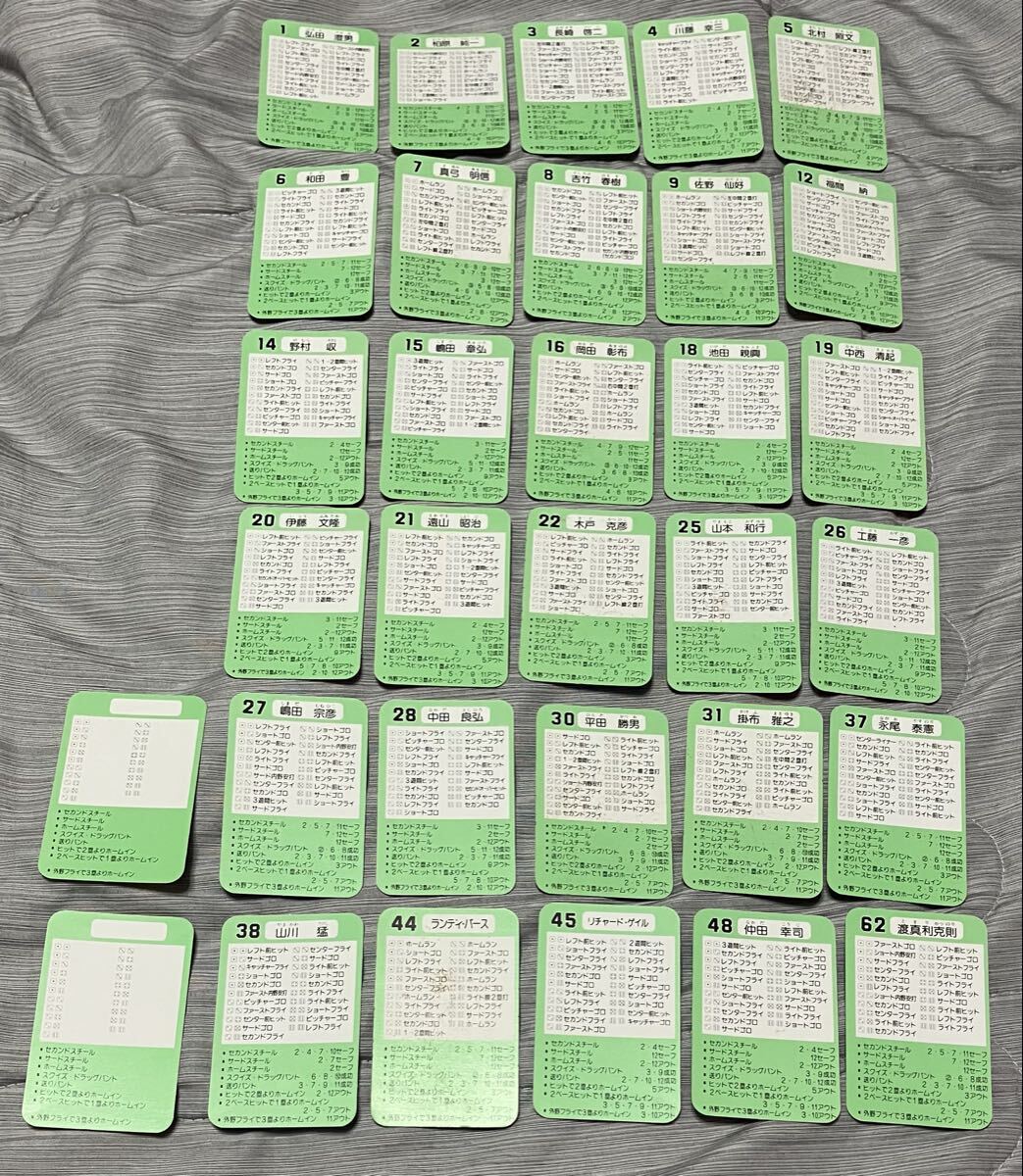 選手カードは30枚揃っており予備カードも2枚あります。ケースもございます。説明書は表面に汚れがついております。カードの表裏書き込み等はございません。写真に写っているものが全てです。経年劣化しておりますが大きなダメージ等はないと思いますが中古品であることをご了承頂ける方のみ入札してください。