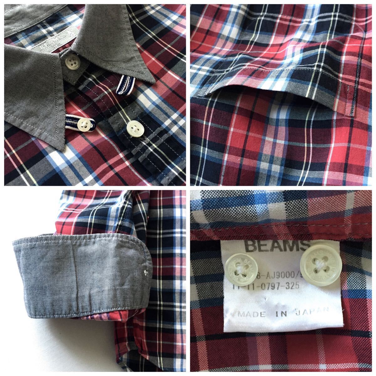 美品 BEAMS Long sleeve Cleric shirt ビームス ロングスリーブ クレリックシャツ Mサイズ 長袖 日本製 MADE IN JAPAN タータンチェック