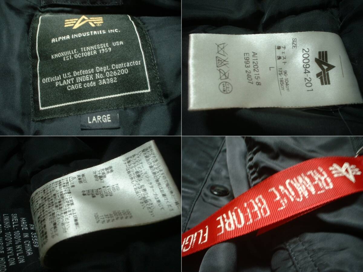 ALPHA INDUSTRIES. N-3BフライトジャケットLタイトJAPAN SPECジェイスペ20094-201正規アルファN3ブラック黒モッズパーカーU.S.AIR FORCE