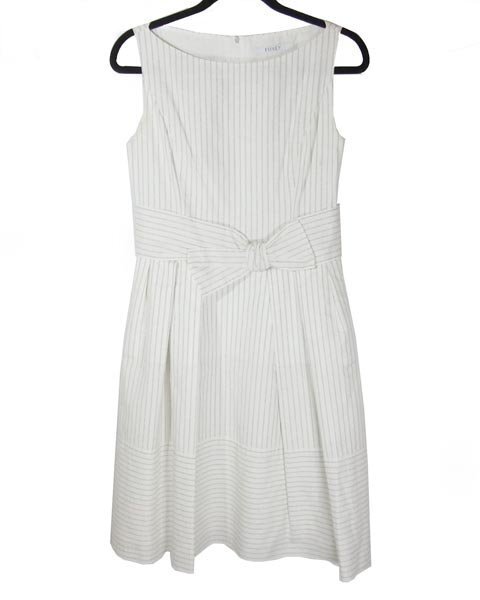 | コットン混の涼し気なややハリのあるお生地。ウエストには大き目リボンのついたフェミニンなワンピース。フォクシーらしいデザインで、春夏スタイルで活躍してくれます。 |