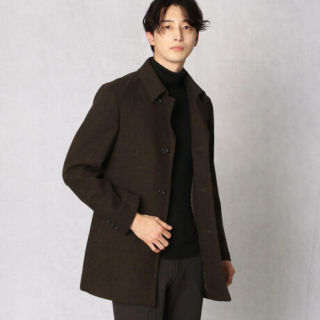 新品 定価5.4万円 COMME CA MEN コムサメン メンズ 英国産ラムウール使用 ネップツイード コート ブラウン Sサイズ