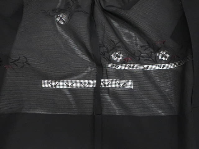 リサイクル商品のため、所々に薄汚れがございますが着用可能なお品です。 地色は黒です。 1枚目の画像が近いお色かと思われます。 素材は正絹です。 |