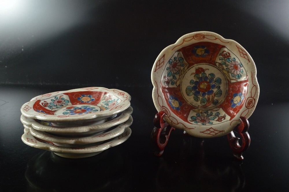 | 商品名 | 【雲】某収集家買取品 古伊万里 色絵花絵付輪花形皿 5客 古美術品(懐石料理道具) N4364 |