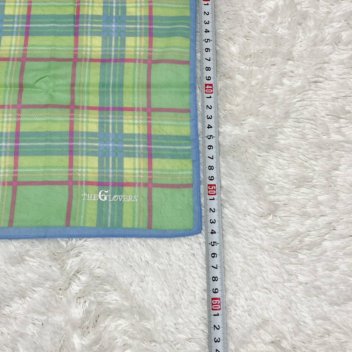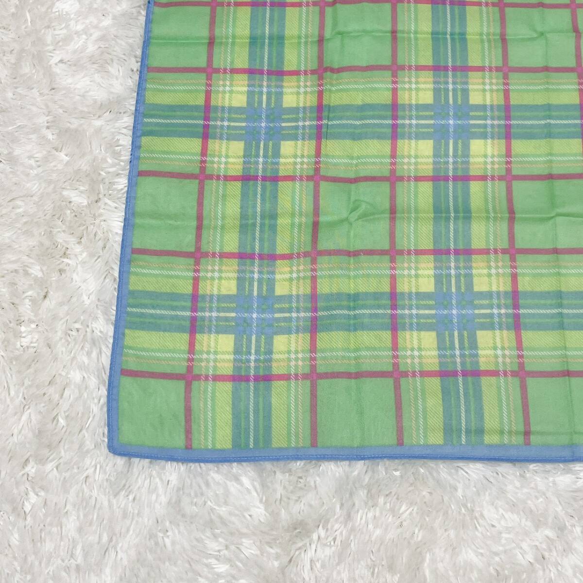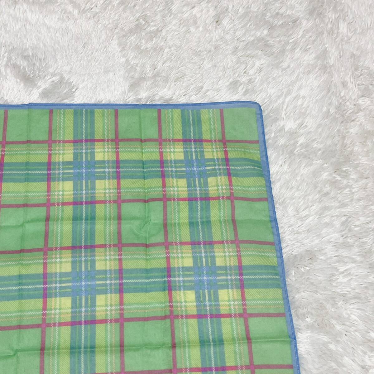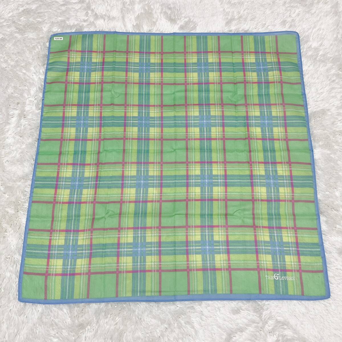THE GLOVERS ザ・グラバーズ チェック柄 スカーフ 綿100% グリーン系 約58cm×58cm コットン レディース