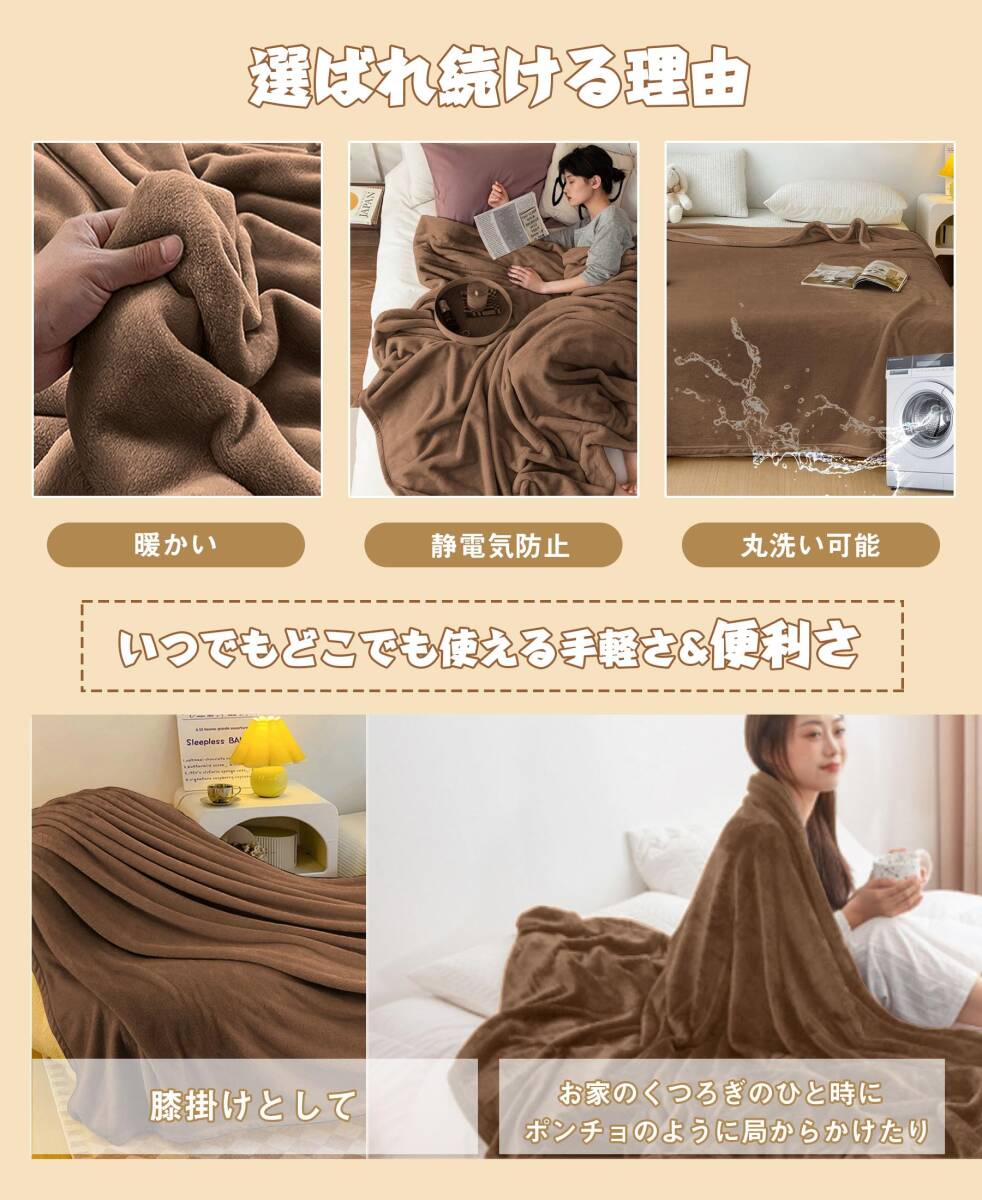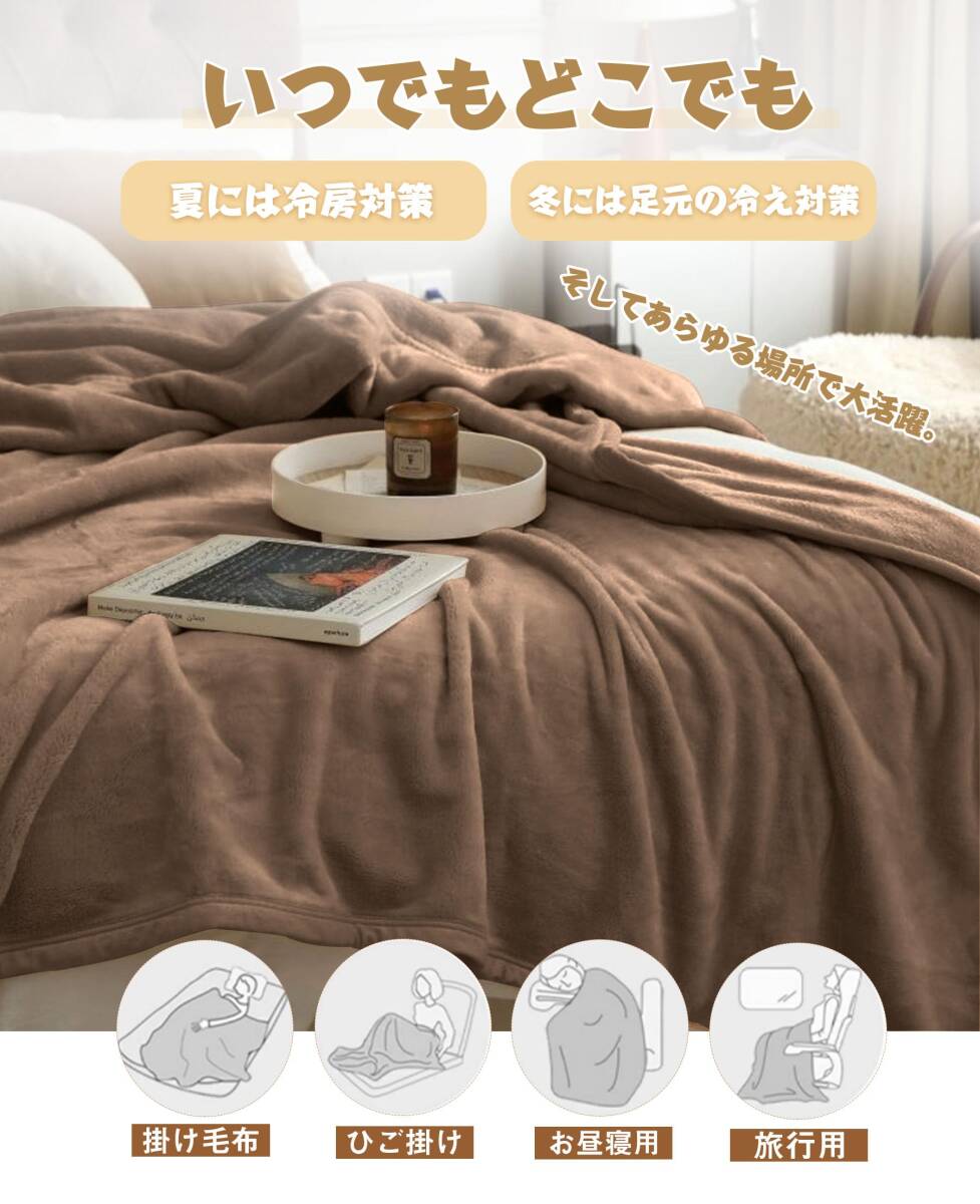 毛布 AYO 冬用 ブランケット 真冬もうふ ひざ掛け・ハーフケット冬用 冷房対策 マイクロファイバー 柔らかく肌触り フランネル 四季適用 洗える 静電防止(カーキ,160*200CM)