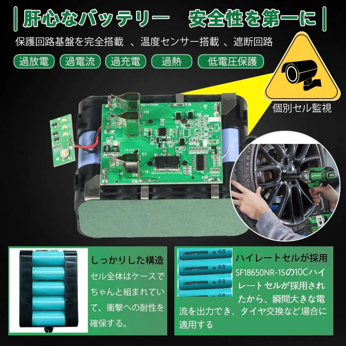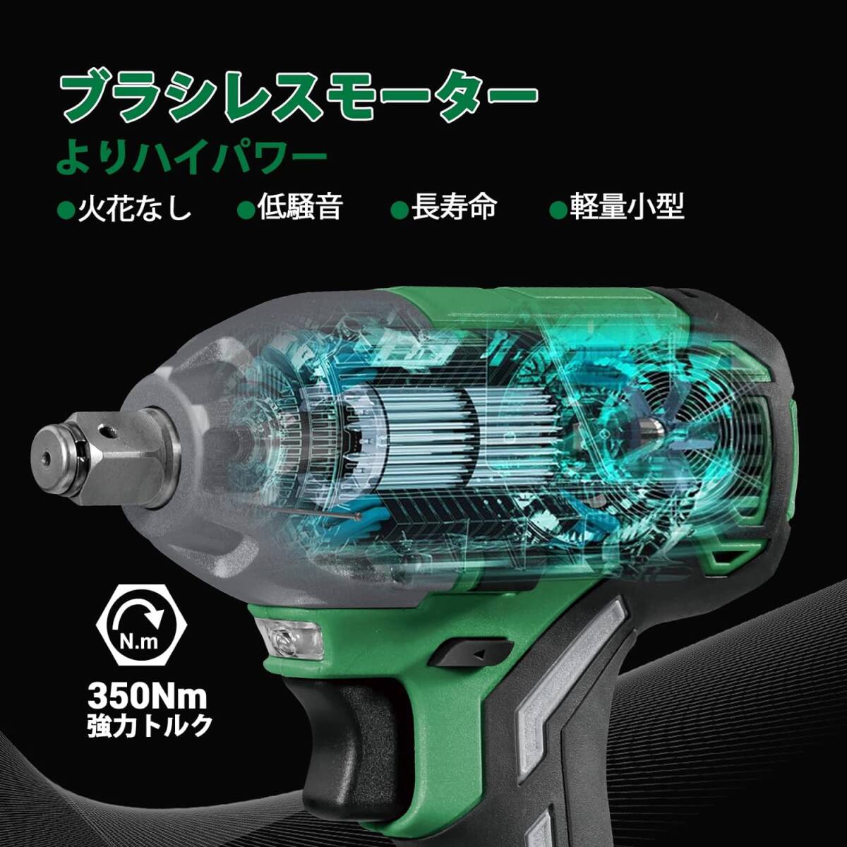 日常使い 高性能充電式インパクトレンチ ブラシレス ハイレートセル 最大350N