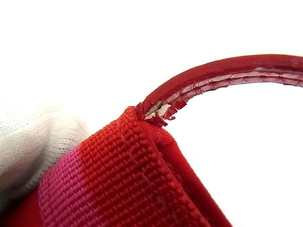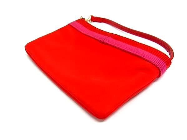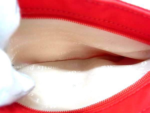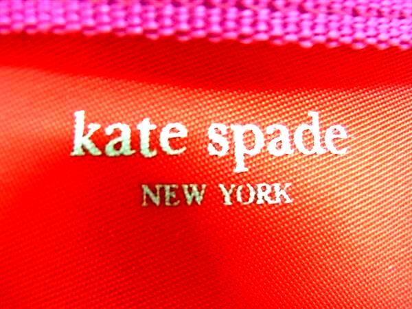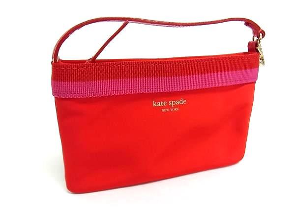 ■美品■ kate spade ケイトスペード ナイロン×レザー メイクポーチ ミニポーチ マルチケース 小物入れ レッド系×ピンク系 DJ3463