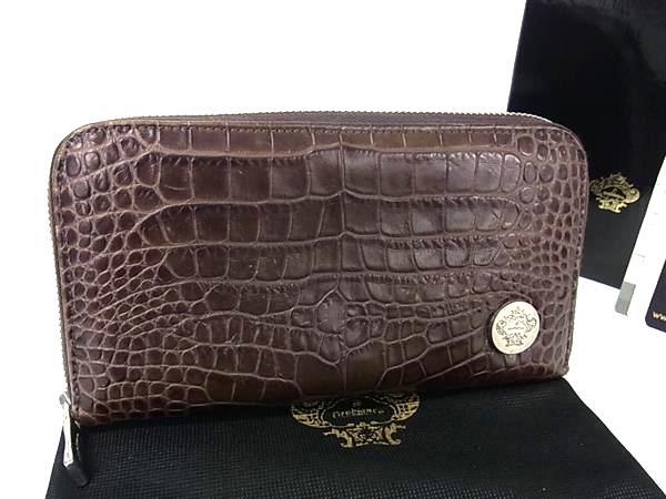 ■美品■ Orobianco オロビアンコ クロコダイル型押しレザー ラウンドファスナー 長財布 ウォレット メンズ ブラウン系 DJ3458