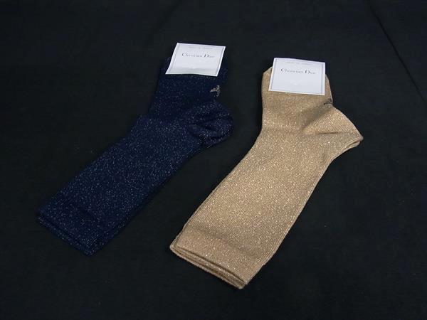 ■新品■未使用■ ChristianDior ディオール コットン 靴下 ソックス 2点セット ベージュ系×ネイビー系 DK8136