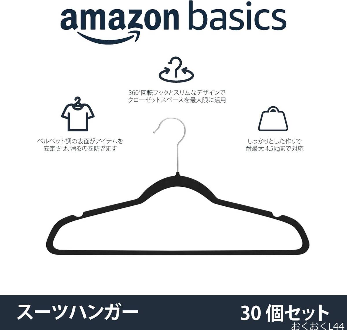 ベーシック ハンガー 30本組 滑らない かたくずれ防止 ベルベット製 ブラック