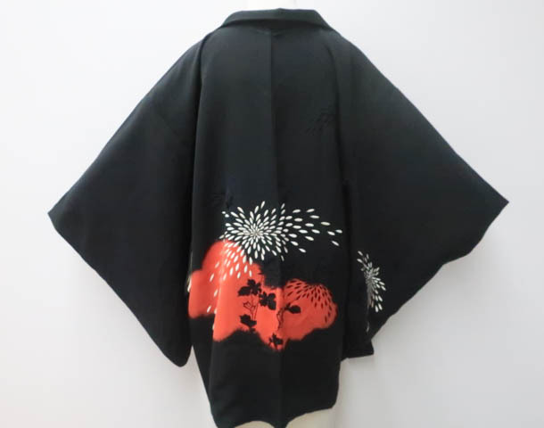 リサイクル商品のため、左襟裏、袖中、羽裏にしみ汚れがございますが着用可能なお品です。 地色は 黒です。 1枚目の画像が近いお色かと思われます。 素材は正絹です。 |