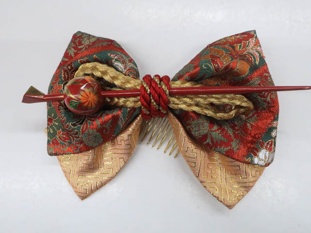 《京都一輝堂》【着物】和装小物 髪飾り リボン 簪付き 25w03-4174