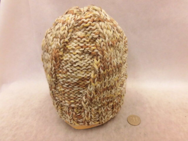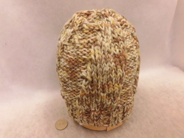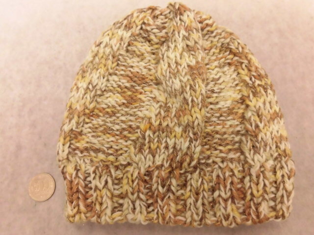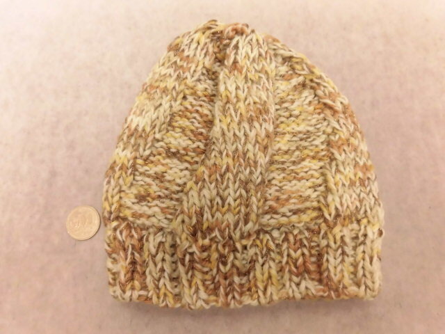 ☆手編み帽子26BB125☆黄色系ラメミックスの斜縞模様の帽子