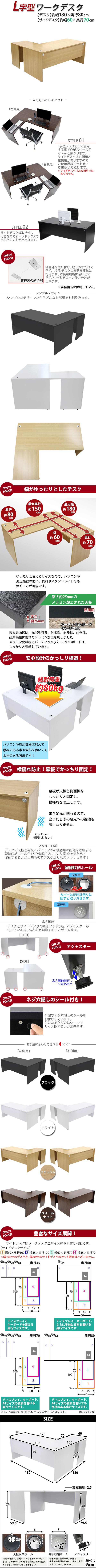 | 商品紹介 | ■作業スペースを広く確保出来る、L字型ワークデスクです。 ■サイドデスクの幅が約60cmのタイプです。 ■会議室や事務所等、オフィス家具として様々なシーンでお使いいただけます。 ■天板には、メラミン加工を施しています。 ■幕板が天板と側面板をがっちりと固定!横揺れを防止します。 ■ネジ穴隠しのシール付き。 ■デスクの天板と幕板に配線収納ホールが2カ所ずつ備わっています。 ■アジャスターで高さの調節が可能です。(高さ調節範囲〜約15mm) ※こちらの商品は、組立て式です。組立てにはプラスドライバーが必要です。お客様でご用意ください。 ※組立図が付属します。 ※サイドデスクの取り付けはデスクの右側専用となります。 ■材質:パーティクル(パーチクル)ボード(メラミン加工)(本体、サイドデスク)、プラスチック(アジャスター、配線収納ホール) ■重量:約63kg(デスク:約47kg、サイドデスク:約16kg) ■総耐荷重:約80kg ●新品商品ではありますが、輸入商品の為、多少の擦り傷などがある場合がございますので、ご納得の上ご購入下さいませ。 ●ご購入後、お客様ご都合によるご返品、ご返金等は一切お受け致しておりません。 ●本商品を使用した際に発生したトラブル、事故につきまして、当社は一切の責任を負いません。ご使用に関しましては、全て自己責任にてお願い致します。 ※カラーはナチュラルとなります。 |