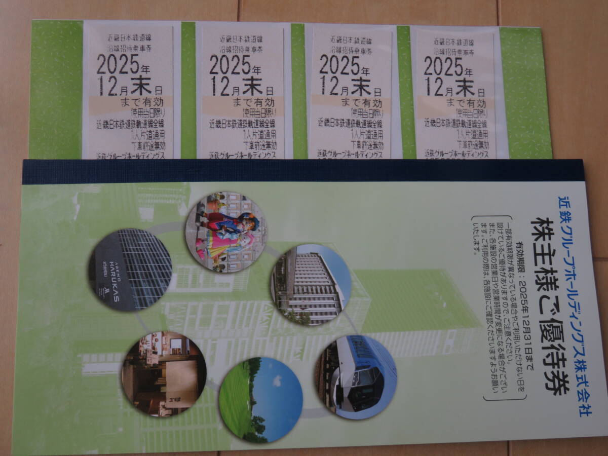 送料無料☆近鉄株主優待 乗車券4枚+優待券1冊 有効期限2025年12月末