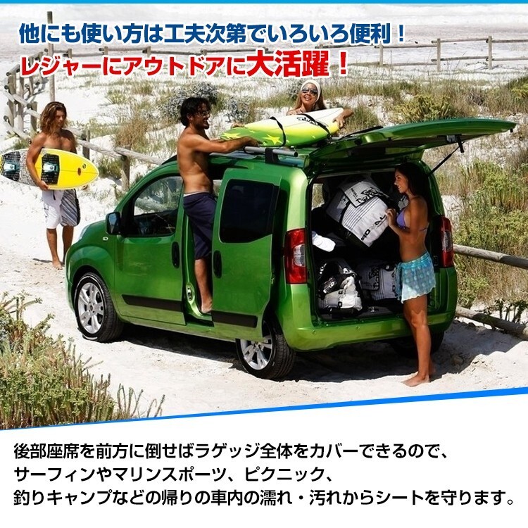 ■ラゲッジ全体をカバーできるので、サーフィンやマリンスポーツ、ピクニック、釣り、キャンプなどの帰りの車内の濡れ・汚れからシートを守ります。